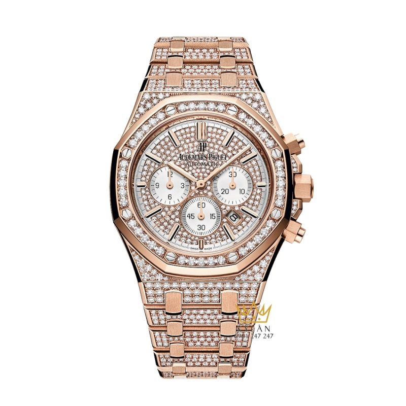 Royal Oak Chronograph vàng hồng full kim cương 41mm – Đỉnh cao xa xỉ trong hình hài Royal Oak biểu tượng