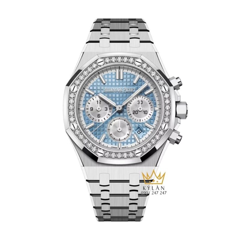 Royal Oak Chronograph 38mm thép mặt xanh nhạt nạm kim cương không chỉ là một chiếc đồng hồ chronograph cao cấp, mà còn là tuyên ngôn phong cách của những cá nhân yêu thích sự tinh tế, cân bằng giữa thể thao và sang trọng.