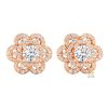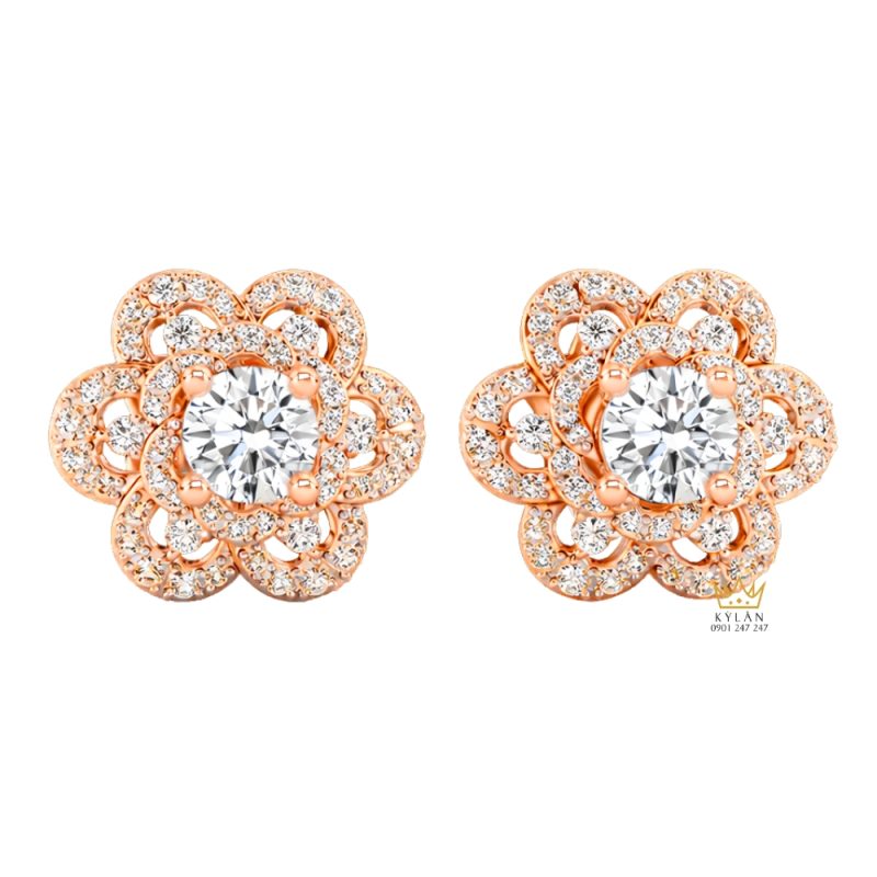 Bông Tai Vàng Hồng Au750 Dáng Hoa Nhiều Lớp Đính Kim Cương