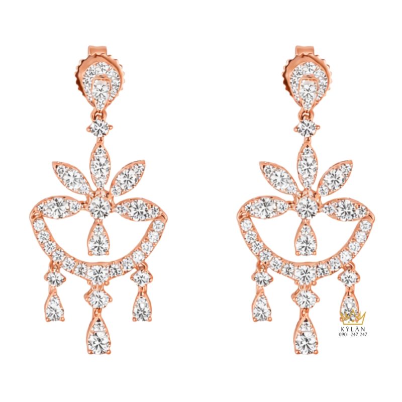 Bông Tai Vàng Hồng Au750 Dáng Dài Đính Kim Cương Nhiều Tầng