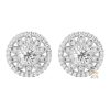 Bông tai vàng trắng Au750 hình hoa đính kim cương với viên kim cương tròn trung tâm và các vòng đá bao quanh.
