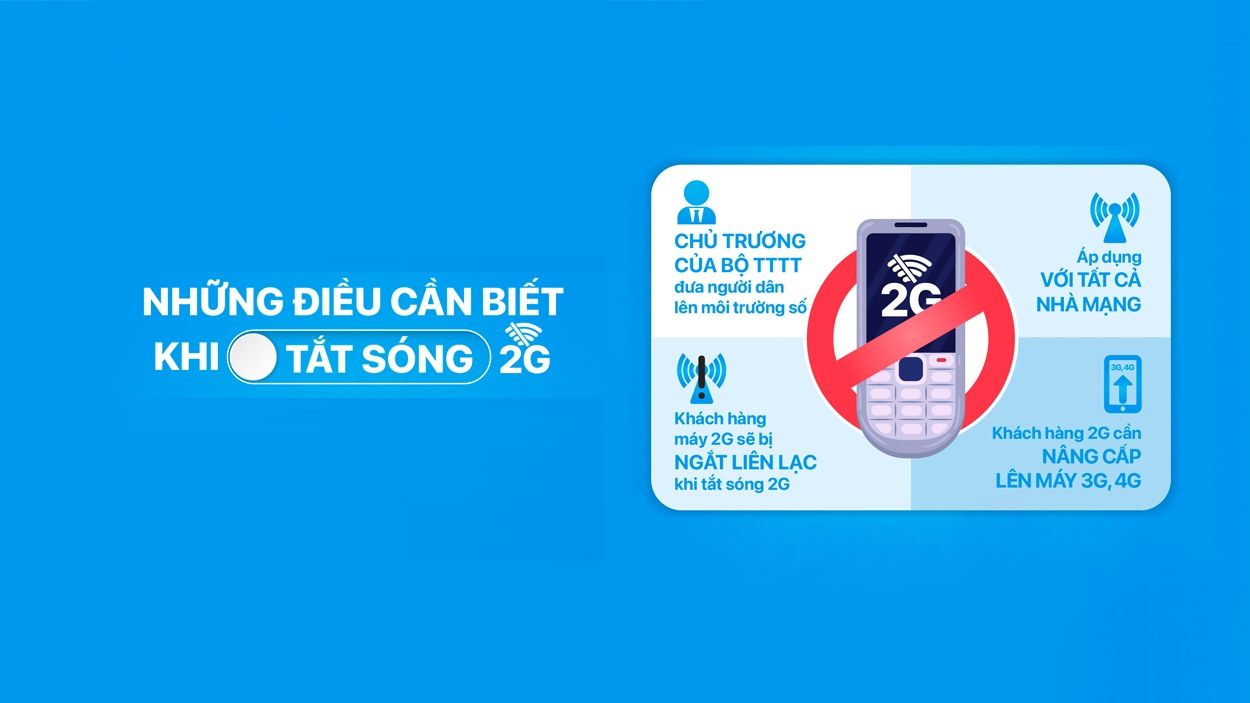 Tuy nhiên, nếu bạn sống ở khu vực chỉ có phủ sóng 2G (và không có sóng 3G, 4G, hoặc 5G), thì bạn sẽ không thể sử dụng dịch vụ di động. Theo ông Nguyễn Phong Nhã (Phó Cục trưởng Cục Viễn thông, Bộ Thông tin và Truyền thông) “Chủ trương dừng sóng 2G, chuyển sang 4G là nhằm hướng tới mục tiêu thúc đẩy cuộc Cách mạng công nghiệp lần thứ Tư, giúp người dân có thể tiếp cận các dịch vụ công, giao dịch trên môi trường hiện đại với tốc độ cao”.