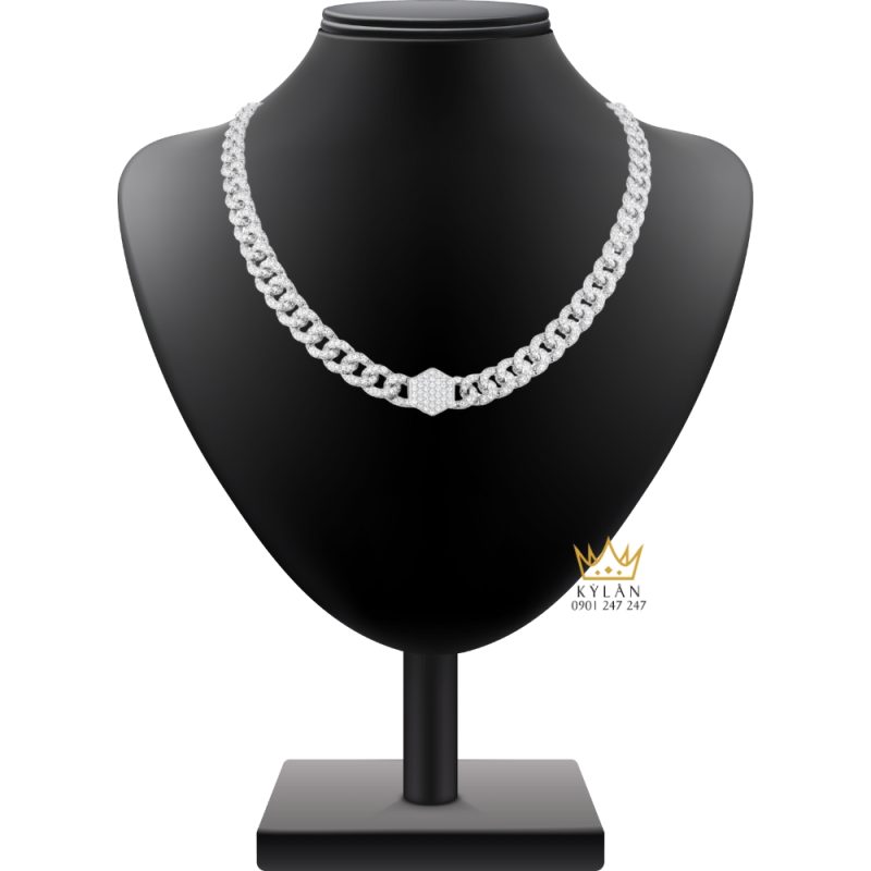 Dây chuyền mắt xích Cuban với bề mặt hoàn thiện mịn, các chi tiết kim cương đính đều tay và cấu trúc liền mạch, giúp tổng thể giữ được sự cân đối và ổn định khi đeo quanh cổ.