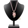 Các mắt tròn được hoàn thiện bo mềm, liên kết linh hoạt để ôm theo đường cong cổ. Tại trung tâm mỗi mắt là viên đá hồng cắt tròn, đặt trong chấu nhỏ cân đối. Sự phân bổ đều dọc chiều dài dây tạo cảm giác liền mạch giữa phần chuỗi và mặt chính, đồng thời duy trì bề mặt đồng nhất khi quan sát.
