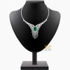 Tổng thể dây chuyền giữ được sự hài hòa giữa viên ngọc lục bảo trung tâm và hệ thống kim cương đính dày trên thân dây. Các chi tiết được hoàn thiện theo cùng một tiêu chuẩn, đảm bảo sự đồng nhất về màu sắc, độ bóng và bố cục. Khi đeo, dây chuyền tạo cảm giác cân đối, bám cổ tốt và giữ được hình dáng ổn định trong quá trình di chuyển.
