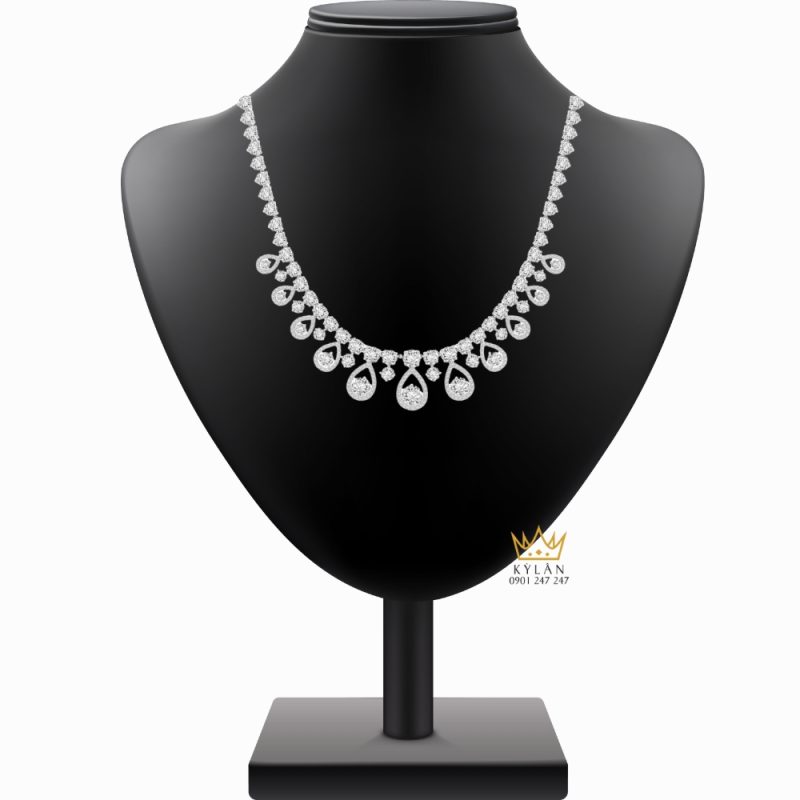 Dọc theo thân dây là các chi tiết kim cương được sắp xếp khéo léo với khoảng cách hợp lý. Kim cương được đính chắc chắn, bố trí đều tay nhằm tạo hiệu ứng ánh sáng nhẹ khi dây chuyền chuyển động. Cách sắp xếp này giúp thân dây không bị trống trải, đồng thời vẫn giữ được sự gọn gàng và cân đối trong thiết kế.