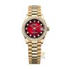 Rolex mặt đỏ Ombre với vành bezel nạm 46 viên kim cương cắt kiểu Brilliant.