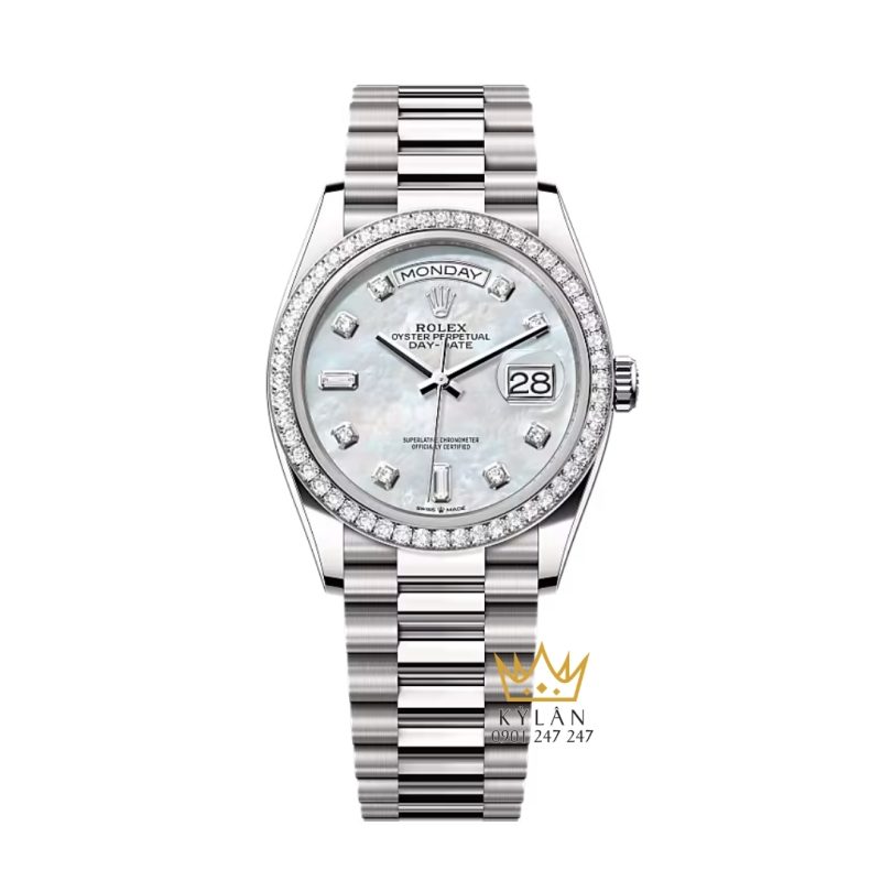 Rolex Day Date 36 mặt xà cừ vành kim cương – Biểu tượng quyền lực và sang trọng vượt thời gian