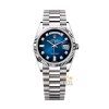 Mặt số xanh ombré chuyển sắc độc đáo kết hợp cọc giờ kim cương, mang đến chiều sâu thị giác và vẻ đẹp xa xỉ đặc trưng của Rolex.