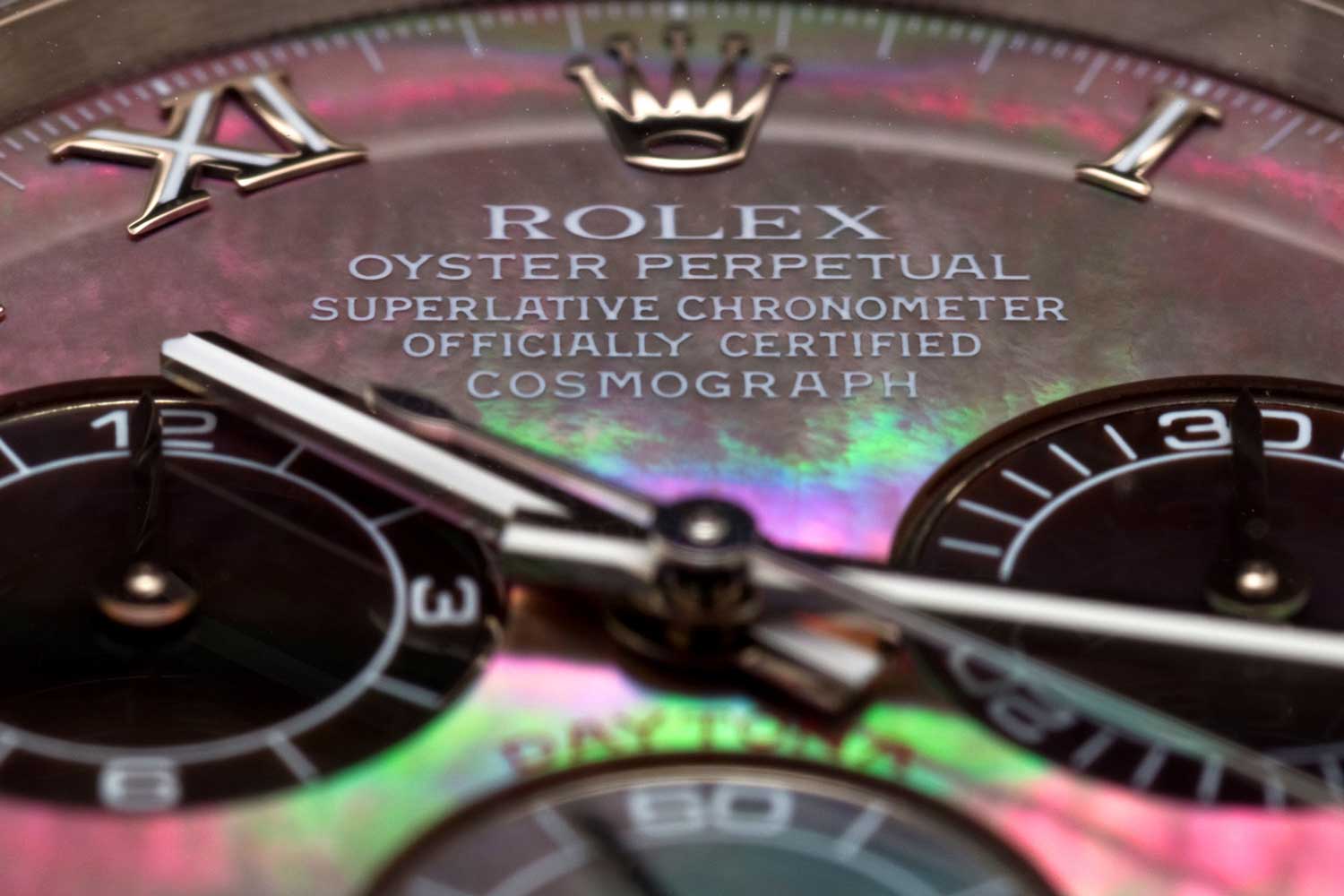 Tỷ lệ hỏng hóc ở cấp độ sản xuất mặt số xà cừ rất cao, do tính chất không thể đoán trước của từng chi tiết độc đáo mà Rolex chế tác thành mặt số. Chính vì thế, mỗi một chiếc đồng hồ sẽ còn là một tác phẩm nghệ thuật vô cùng độc đáo. Có thể nói rằng, mỗi một mặt số đều là độc bản, và cũng chính những chi tiết hấp dẫn này mà phiên bản Rolex 116519 rất được giới sưu tầm ưa chuộn. Và cho đến ngày nay, phiên bản này vẫn rất lôi cuốn và được nhiều người quan tâm đến khi nhắc đến Rolex.