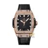 Hublot Spirit of Big Bang King Gold Pavé sở hữu kích thước vỏ 39mm, mang đến tỷ lệ hài hòa, thanh lịch và dễ đeo trên nhiều cỡ cổ tay. Dáng vỏ tonneau đặc trưng giúp đồng hồ ôm tay tự nhiên, tạo cảm giác gọn gàng nhưng vẫn rất nổi bật nhờ độ dày và chiều sâu thị giác của thiết kế skeleton.