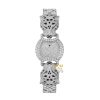 Mặt số vàng trắng đính kim cương kết hợp kim giờ phút dạng kiếm, đảm bảo khả năng xem giờ rõ ràng trong thiết kế trang sức cao cấp.
