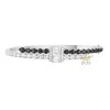 Hai bên thân lắc được đính xen kẽ kim cương trắng và đá quý đen cắt tròn, sắp xếp song song theo đường cong của vòng. Các viên đá được gắn đều tay, khoảng cách giữa các viên được xử lý hợp lý, tạo sự liền mạch và nhịp điệu thị giác rõ ràng. Sự kết hợp giữa đá trắng và đá đen tạo độ tương phản rõ rệt, giúp thân lắc có chiều sâu mà không làm rối bố cục tổng thể.