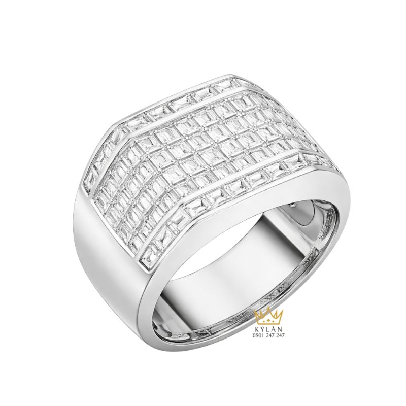 Nhẫn nam vàng trắng Au750 đính full kim cương baguette là mẫu trang sức được phát triển theo hướng thiết kế bản lớn, chú trọng vào hình khối, bố cục và sự đồng nhất trong cách sắp xếp kim cương. Toàn bộ bề mặt nhẫn được phủ kín kim cương baguette, tạo nên tổng thể liền mạch, rõ nét và có chiều sâu khi quan sát từ nhiều góc độ. Thiết kế hướng đến sự chỉn chu trong từng chi tiết, phù hợp với những người yêu thích nhẫn nam có bố cục rõ ràng và phong cách hiện đại.