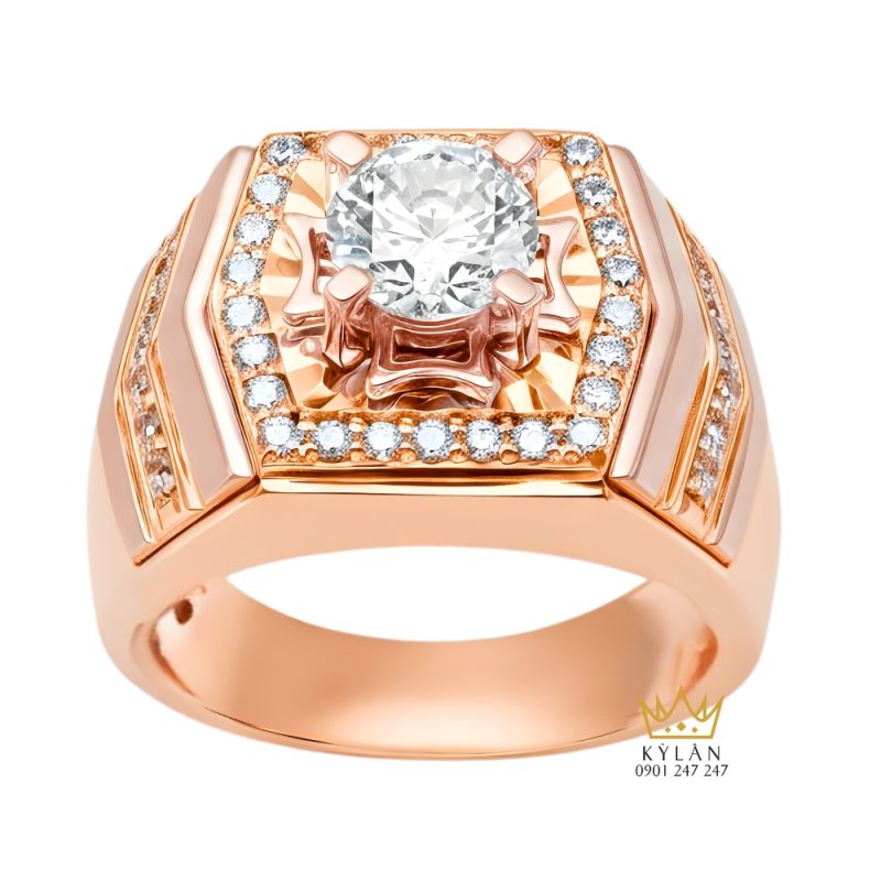 Thiết kế này không chỉ thể hiện sự tinh xảo mà còn làm nổi bật sự đẳng cấp của người đeo. Việc bố trí kim cương theo hình chóp tạo nên hiệu ứng ánh sáng bắt mắt, khiến chiếc nhẫn luôn nổi bật, tỏa sáng trong mọi hoàn cảnh. Đây là lựa chọn lý tưởng cho những quý ông yêu thích phong cách cá tính, mạnh mẽ nhưng vẫn sang trọng và tinh tế.