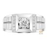 Nhẫn nam thiết kế mặt hình vuông bo nhẹ các góc, phần mặt nổi cao so với thân nhẫn tạo cấu trúc nhiều lớp rõ ràng. Khung mặt được xử lý dạng vát cạnh, giúp phân tách mảng giữa khu vực trung tâm và hai bên vai. Tổng thể hình khối vuông kết hợp các đường cắt thẳng tạo bố cục rõ ràng khi nhìn chính diện.