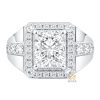 Nhẫn nam vàng trắng Au750 mặt vuông bản lớn, kim cương trung tâm 4 chấu, các lớp đá bao quanh đối xứng, bề mặt phẳng và liền mạch.