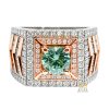 Nhẫn nam vàng trắng Au750 mix vàng hồng đính kim cương tấm và đá quý xanh dáng tròn, thiết kế bản lớn với mặt nhẫn nổi bật và thân nhẫn phủ kín kim cương liền mạch.