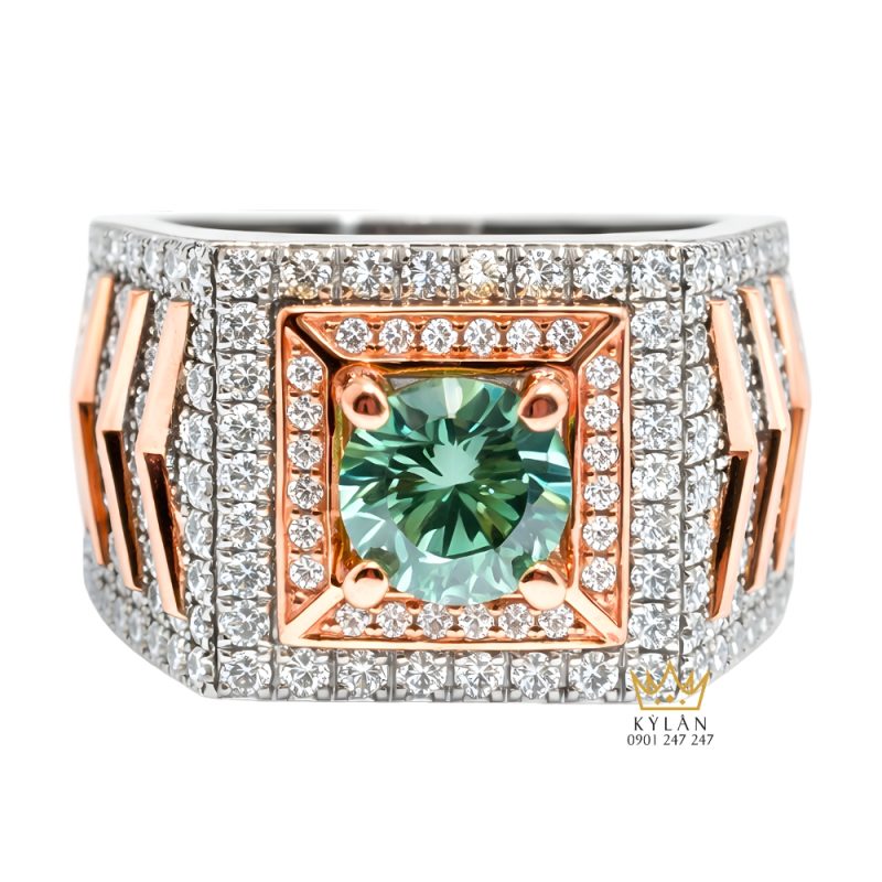 Nhẫn Nam Vàng Trắng Mix Vàng Hồng Đính Kim Cương Và Đá Quý Xanh
