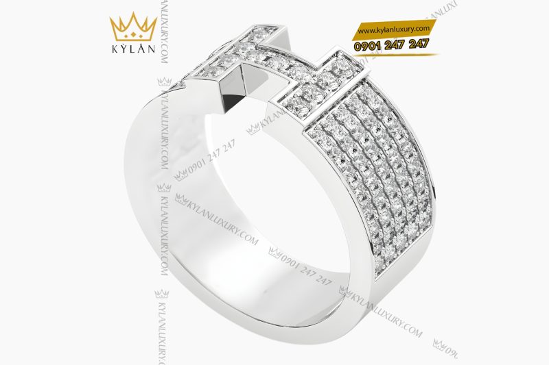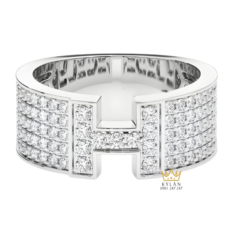 Các viên kim cương trắng được đính đều theo bố cục gọn gàng trên mặt nhẫn chữ H, giúp bề mặt nhẫn bắt sáng tốt khi quan sát ở nhiều góc độ khác nhau. Kim cương được tuyển chọn kỹ lưỡng về độ sáng và độ trong, mang lại hiệu ứng lấp lánh tinh tế nhưng không quá phô trương.