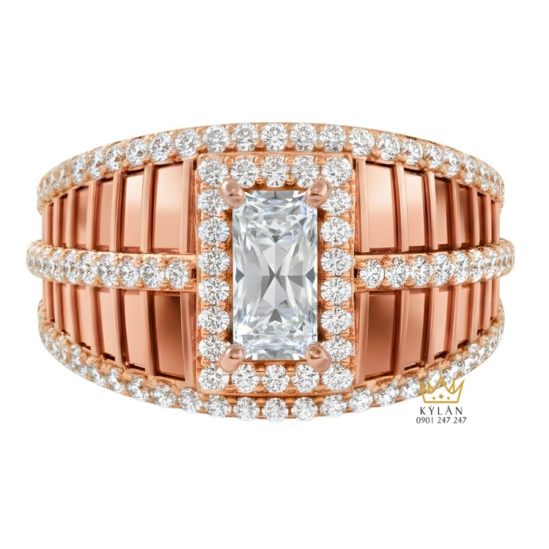 Nhờ sự kết hợp hoàn hảo giữa kim cương và vàng hồng, chiếc nhẫn này không chỉ nổi bật mà còn tạo cảm giác sang trọng, ấm áp và quyến rũ. Màu vàng hồng ấm áp giúp làm nổi bật các viên kim cương lấp lánh, tạo nên sự hài hòa tuyệt vời giữa các yếu tố trong thiết kế. Phần kim cương chính và các chi tiết kim cương nhỏ xung quanh giúp tôn lên vẻ đẹp mềm mại và quý phái của chất liệu vàng hồng.