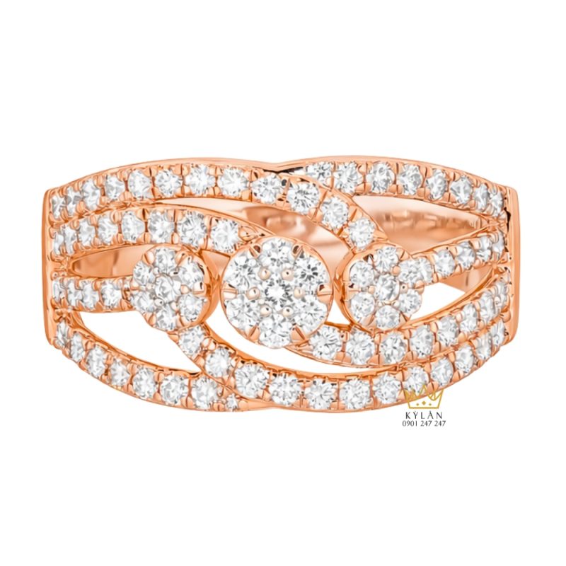 Nhẫn Nữ Vàng Hồng Au750 Dáng Uốn Lượn Đính Kim Cương