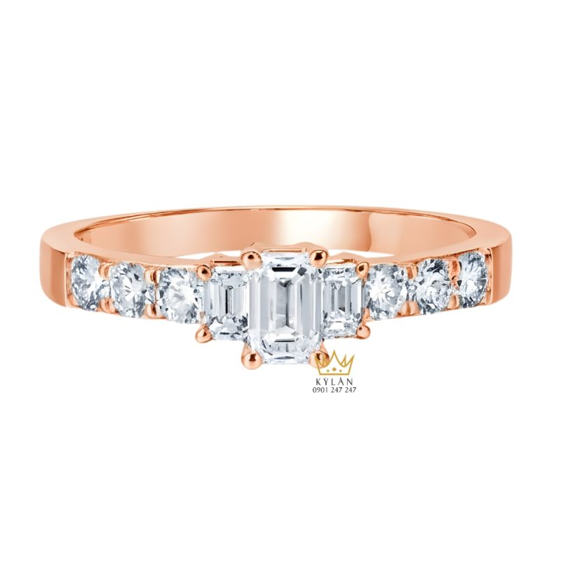 Hãy để chiếc nhẫn nữ vàng hồng Au750 đính kim cương baguette, thiết kế thanh lịch và nổi bật, phù hợp cho sự kiện và làm quà tặng ý nghĩa sang trọng từ Kỳ Lân là mảnh ghép hoàn hảo, khẳng định phong cách và đẳng cấp không giới hạn của quý khách.