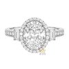Bao quanh viên kim cương trung tâm là vòng halo đính kim cương tấm nhỏ, sắp xếp liền mạch theo đường viền oval. Các viên kim cương được đính đều tay, tạo thành khung viền rõ ràng cho đá chủ.