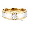 Tâm điểm của mẫu nhẫn là viên kim cương tròn được đặt ở vị trí trung tâm mặt nhẫn. Viên đá được giữ chắc chắn bằng hệ chấu cân xứng, giúp kim cương ổn định trong quá trình sử dụng. Cách đặt đá trung tâm theo trục thẳng giúp mặt nhẫn giữ được sự cân bằng khi nhìn trực diện, đồng thời tạo điểm nhấn rõ ràng cho thiết kế.