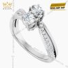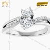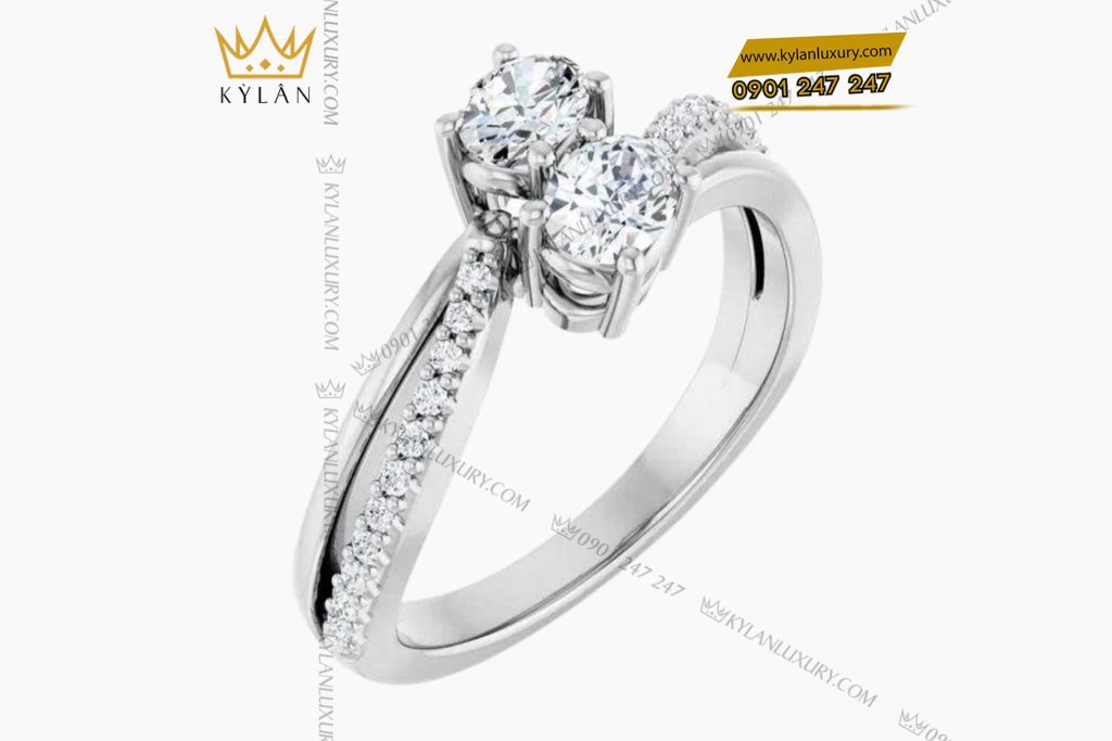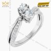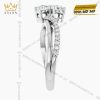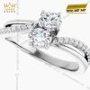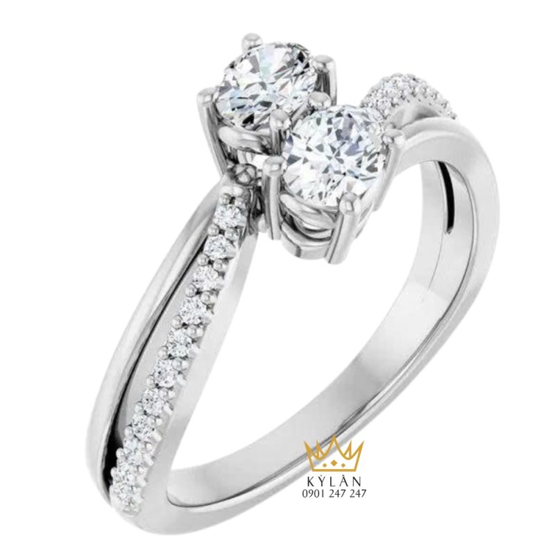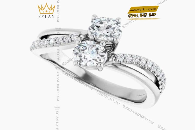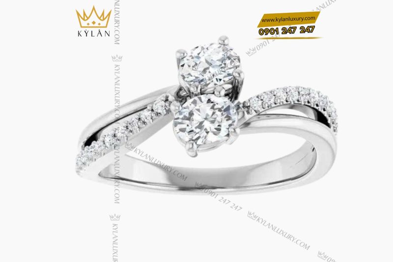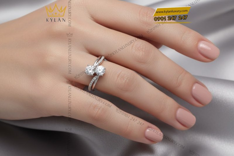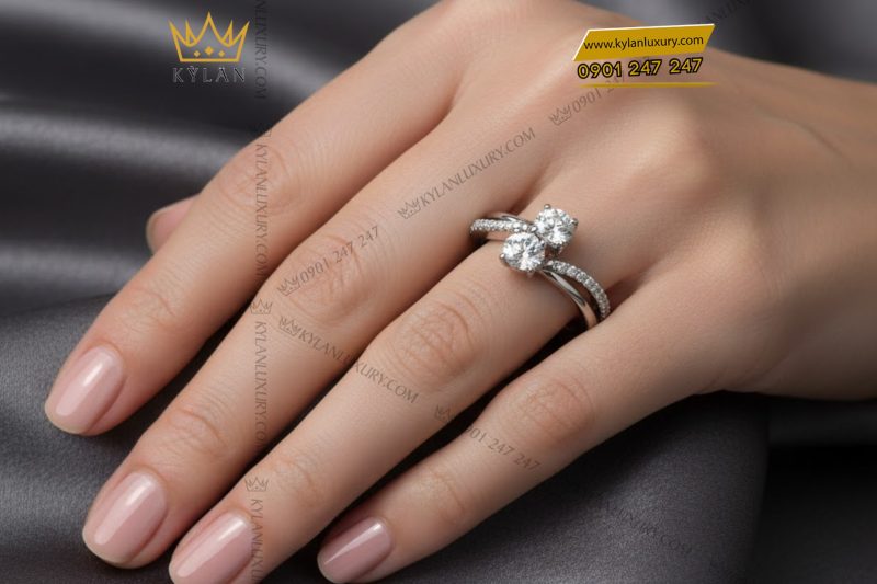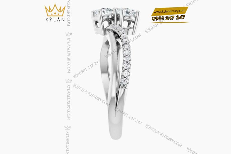Thiết kế nhẫn thể hiện sự giao hòa tinh tế qua phần đai nhẫn được tạo hình uốn lượn mềm mại, mô phỏng hai dòng chảy song song hòa quyện. Đường nét này không chỉ mang lại tính thẩm mỹ độc đáo mà còn tạo nên sự cân bằng hoàn hảo cho hai viên kim cương chủ. Đường cong mềm mại này chính là điểm nhấn nữ tính đầy cuốn hút.