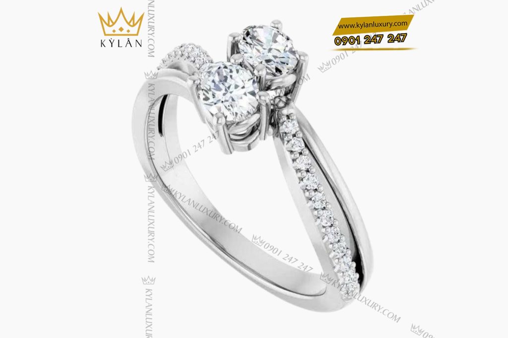 Chiếc nhẫn vàng trắng nguyên khối Au750 đính hai viên chủ kim cương nổi bật với thiết kế hai viên kim cương chủ rực rỡ, tựa như hai vì tinh tú soi sáng giữa bầu trời. Mỗi viên kim cương được cắt tròn chuẩn xác, có công năng tối ưu hóa sự phản chiếu, mang lại vẻ đẹp thuần khiết và sang trọng tuyệt đối. Sự đặt cạnh hai viên chủ biểu trưng cho sự gắn kết và hòa quyện tinh tế.