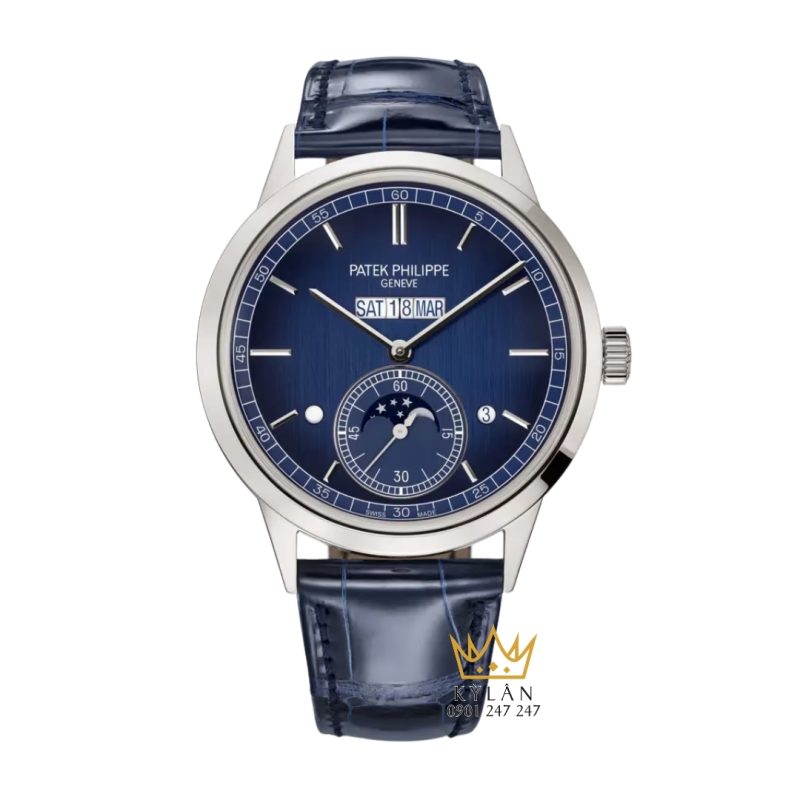 Patek Philippe platinum mặt số xanh là một trong những mẫu lịch vạn niên hiện đại nhất của thương hiệu, nổi bật với cơ chế hiển thị nội tuyến hiếm có. Đây là minh chứng rõ nét cho khả năng đổi mới không ngừng của Patek Philippe trong lĩnh vực haute horlogerie.