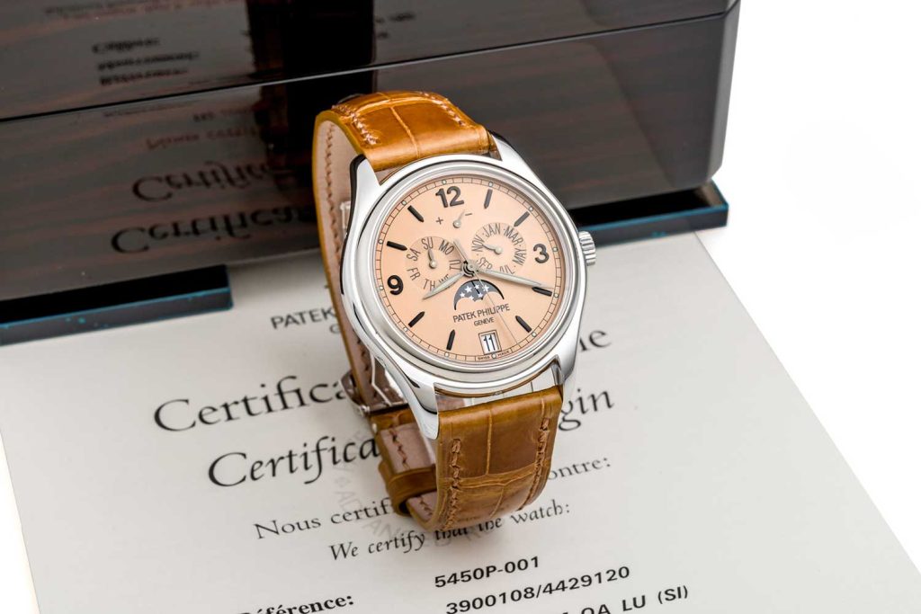 - 2008 – Mẫu Ref. 5450P: Lịch Năm đánh dấu lần đầu tiên Patek Philippe sử dụng bộ thoát Silicon dạng Pulsomax.