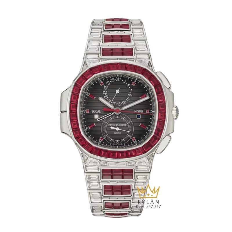 Sự hiện diện của Patek Philippe Nautilus 5990/1422G-001 tại Kỳ Lân mang đến cơ hội trải nghiệm trực tiếp vẻ đẹp của vàng trắng, ruby, kim cương và bộ máy chronograph Travel Time danh giá trên cổ tay.