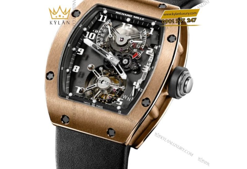 Chất liệu vàng hồng mang lại vẻ đẹp ấm áp, sang trọng, tạo sự tương phản đầy cuốn hút với cấu trúc cơ khí kỹ thuật cao bên trong. Sự kết hợp giữa vật liệu quý truyền thống và công nghệ tiên tiến thể hiện rõ triết lý “fusion” đã trở thành DNA của Richard Mille.