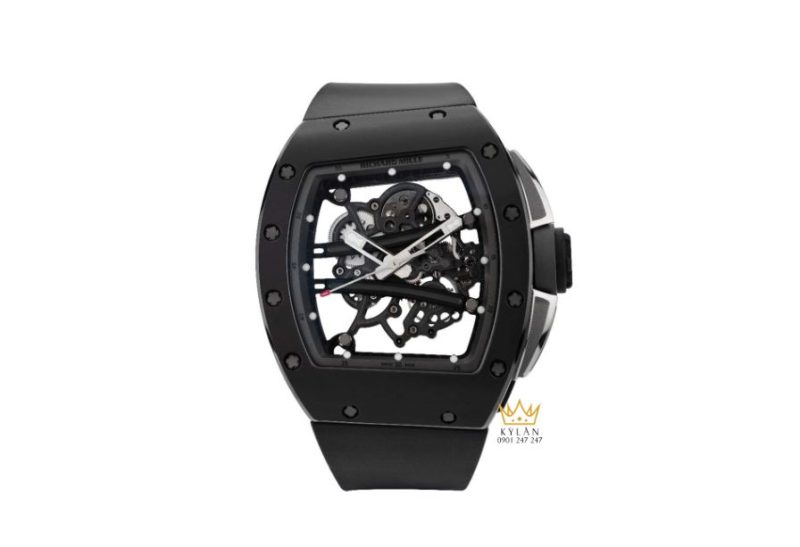 Tông màu đen chủ đạo tạo nên vẻ ngoài mạnh mẽ, gọn gàng và có phần lạnh hơn so với nhiều phiên bản Richard Mille khác. Chính sắc đen ấy giúp chiếc đồng hồ trở nên dễ đeo hơn trong nhiều hoàn cảnh, nhưng không vì thế mà giảm đi độ nổi bật. Ngược lại, RM 61-01 tạo sức hút bằng sự tối giản có chủ đích, nơi từng chi tiết đều được giữ lại để phục vụ cho hiệu năng và nhận diện thẩm mỹ.
