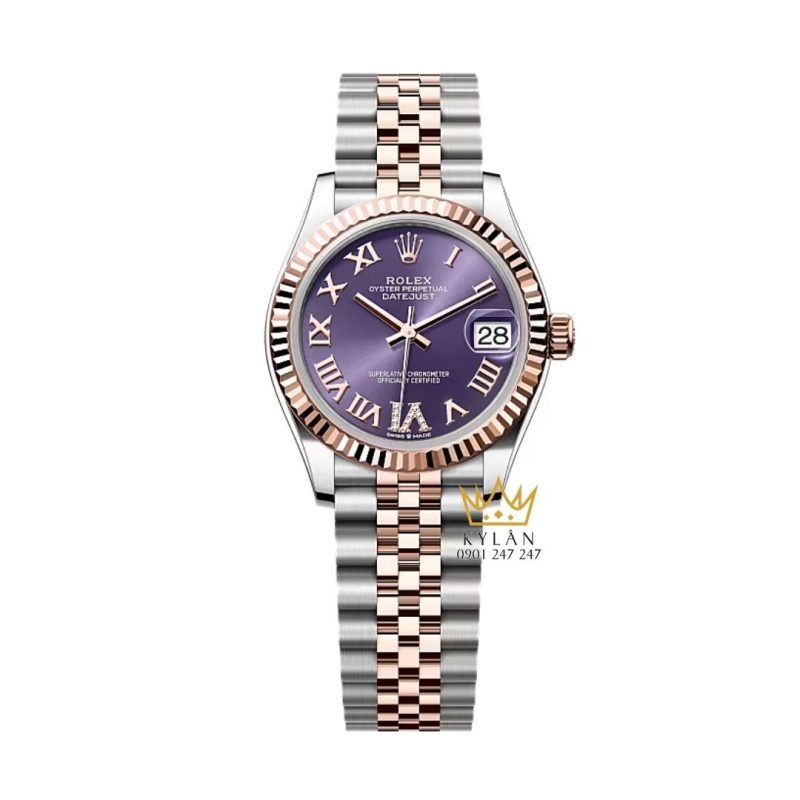 Mẫu Rolex Datejust 31 278271-0020 nổi bật với mặt số aubergine nạm kim cương, thiết kế sang trọng và tinh tế.