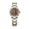 Phiên bản Rolex Datejust 31 278383RBR-0023 nổi bật với kích thước 31mm cùng thiết kế Rolesor vàng (thép Oystersteel kết hợp vàng vàng 18K). Điểm nhấn nằm ở mặt số xà cừ đen tự nhiên đính kim cương, kết hợp cùng vành bezel nạm kim cương, mang đến diện mạo sang trọng, độc đáo và đầy cuốn hút.