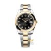 Mặt số đen đính kim cương kết hợp hai tông thép – vàng vàng giúp chiếc đồng hồ trở nên nổi bật theo cách sang trọng, phù hợp với cả môi trường công sở lẫn những dịp trang trọng.