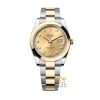 Mặt số champagne đính kim cương kết hợp hai tông thép – vàng vàng giúp chiếc đồng hồ trở nên nổi bật theo cách sang trọng, phù hợp với cả môi trường công sở lẫn những dịp trang trọng.