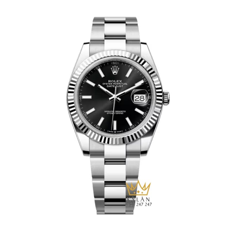 Phiên bản Rolex Datejust 41 126334-0017 nổi bật với kích thước 41mm cùng thiết kế White Rolesor (thép Oystersteel kết hợp vàng trắng 18K). Điểm nhấn nằm ở mặt số đen (Bright Black) tối giản, kết hợp vành bezel khía đặc trưng, mang đến diện mạo mạnh mẽ, tinh tế và cực kỳ dễ ứng dụng.