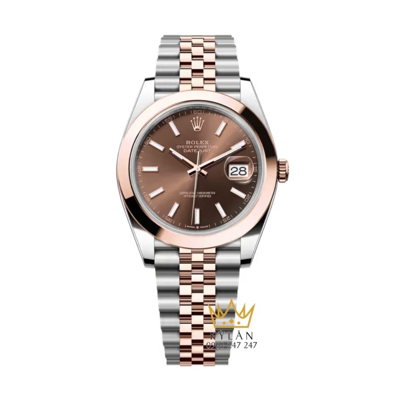 Phiên bản Rolex Datejust 41 126301-0002 mang đến một sắc thái khác biệt với dây Jubilee mềm mại đặc trưng, kết hợp cùng mặt số chocolate cuốn hút và cấu trúc Rolesor giữa thép Oystersteel và vàng hồng Everose 18k. Sự hòa quyện này tạo nên vẻ đẹp sang trọng, tinh tế hơn, phù hợp với những ai yêu thích phong cách lịch lãm mang hơi hướng dress watch rõ nét.