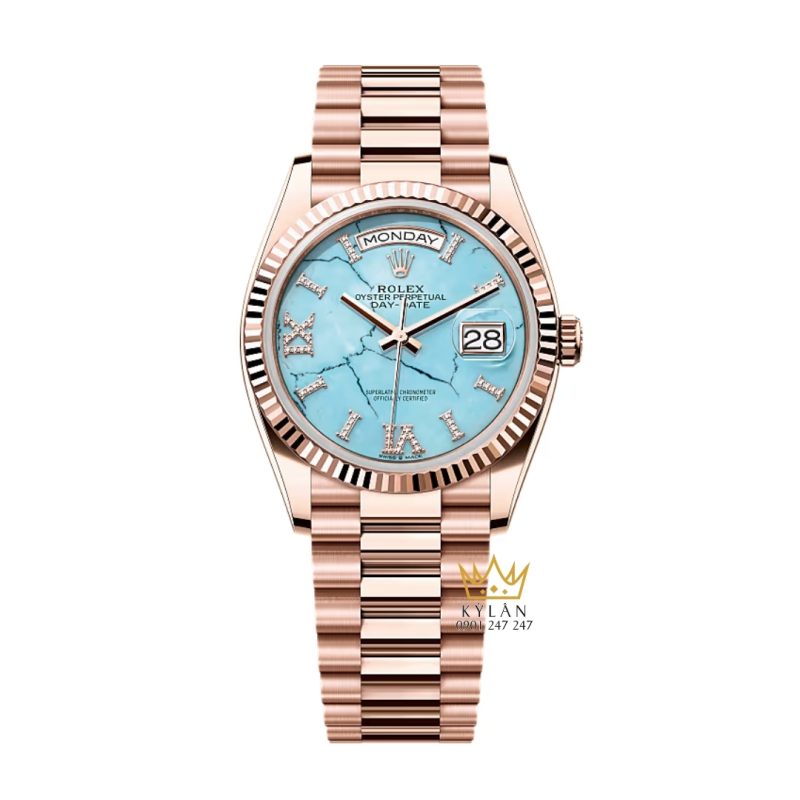 Sự kết hợp giữa màu vàng Everose ấm áp và mặt số turquoise độc đáo giúp mẫu Day Date này dễ dàng trở thành điểm nhấn trên cổ tay, phù hợp cho cả môi trường công việc lẫn những dịp trang trọng.