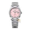 Mặt số opal hồng tự nhiên kết hợp cọc số kim cương tạo nên vẻ đẹp hiếm gặp, tinh tế và khác biệt của Rolex Day-Date 36.