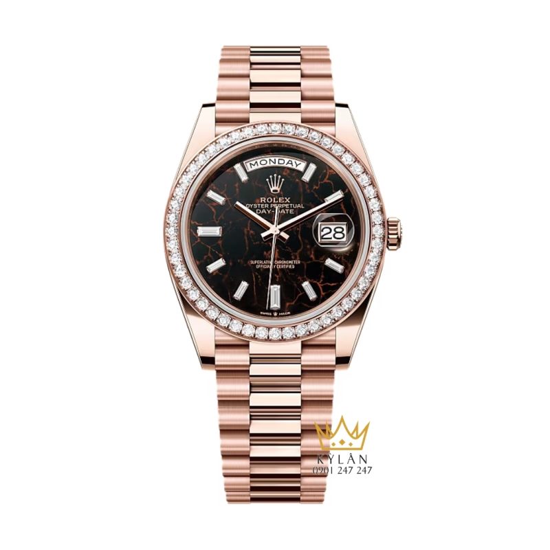 Rolex Day Date 40 Eisenkiesel vàng hồng 18ct, vành kim cương – biểu tượng đẳng cấp thượng lưu.