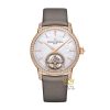 Đồng hồ đi kèm hai dây đeo màu xám gồm dây satin và dây da cá sấu Mississippiensis, mang lại sự linh hoạt và thoải mái cho người đeo. Khóa gập bằng vàng hồng 18K hoàn thiện vẻ đẹp tổng thể hài hòa và sang trọng.