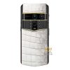 Mặt lưng được bọc da cá sấu Himalaya quý hiếm, được tuyển chọn kỹ lưỡng và hoàn thiện thủ công theo tiêu chuẩn khắt khe của Vertu, mang lại cảm giác cầm nắm mềm mại, sang trọng và thể hiện dấu ấn cá nhân độc đáo theo thời gian. Khung máy được chế tác từ hợp kim titan cao cấp, phủ ceramic màu đen hiện đại, kết hợp các chi tiết điểm xuyết vàng vàng tinh tế. Toàn bộ bộ khung được gia công tỉ mỉ với kỹ thuật đánh bóng và chải xước tinh tế, tạo nên vẻ đẹp sang trọng cùng độ bền vượt trội.