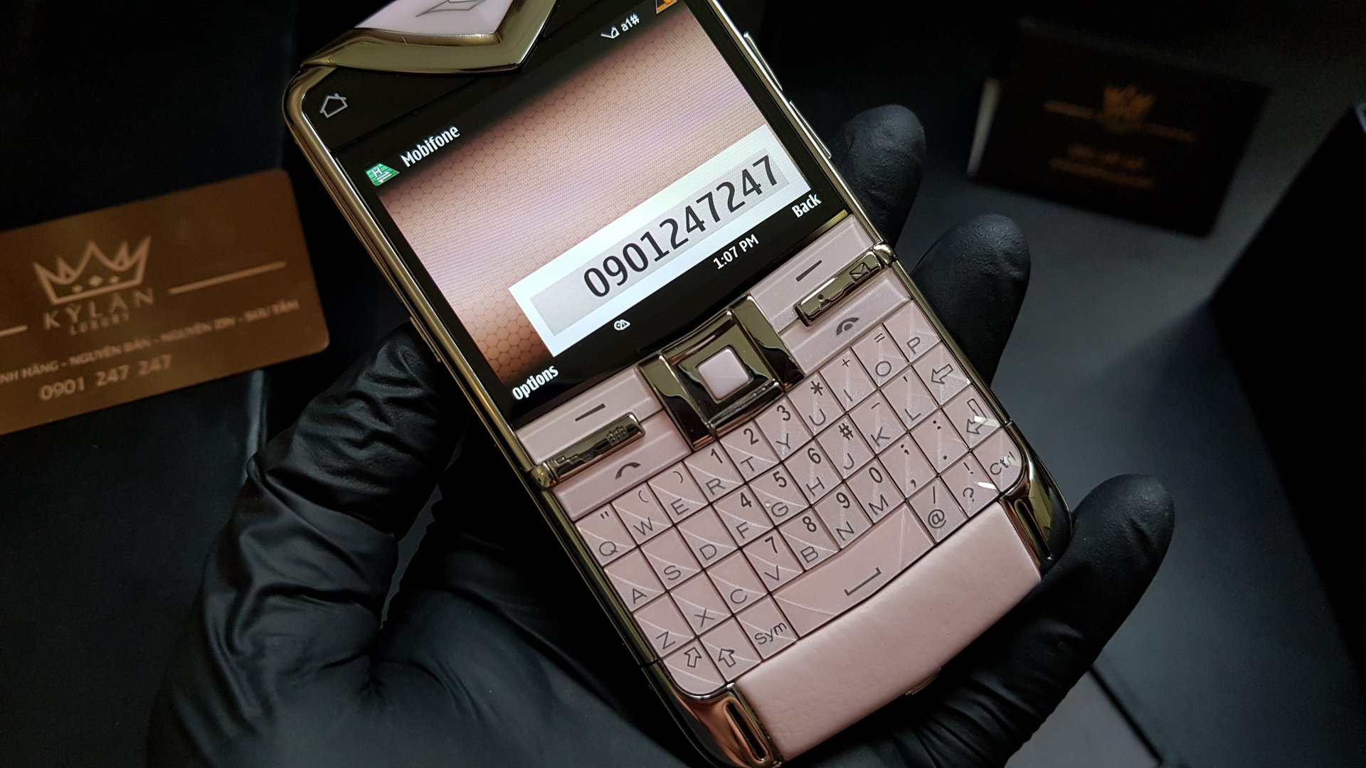 Toàn bộ những phím bấm của chiếc điện thoại này đều được làm từ đá và kim loại. Nó giúp chiếc máy trở nên sang trọng và đẳng cấp hơn, mặt sau của máy là một tấm da khá lớn với màu hồng nhẹ nhàng và nữ tính. Kèm theo đó là những chi tiết kim loại được điểm tô cho sản phẩm thêm cứng cáp. Chất liệu da trên chiếc máy cũng được tuyển chọn vô cùng kỹ tại những xưởng da lâu đời ở Châu Âu. Ngay cả những chiếc đinh ốc trên chiếc điện thoại này cũng được cách điệu khá đặc sắc.