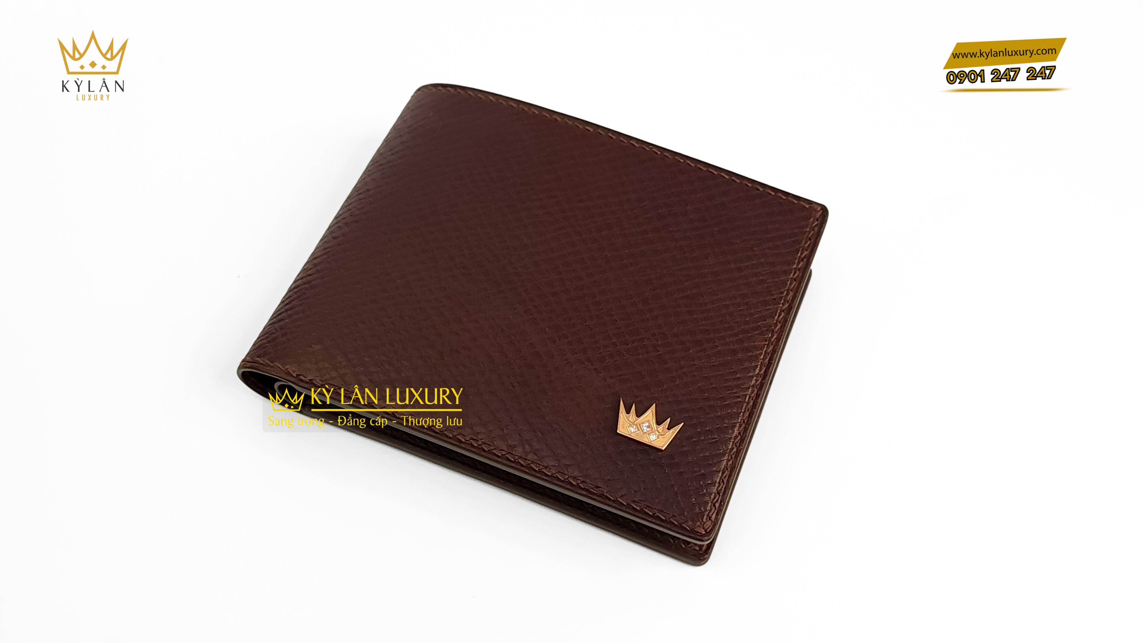 Ví nam da bê màu nâu logo vàng đính kim