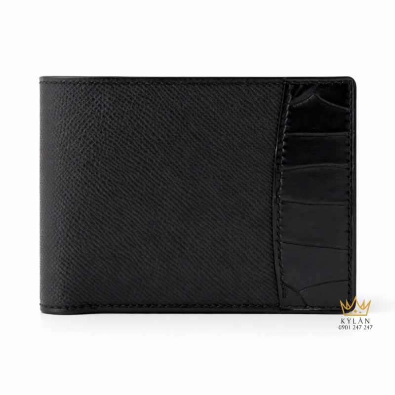 Ví nam da Epsom đen mix da Swift là mẫu phụ kiện được thiết kế theo phong cách gập đôi tối giản, chú trọng vào hình khối gọn gàng và tính tiện dụng trong sinh hoạt hằng ngày. Tổng thể chiếc ví mang bố cục rõ ràng, đường nét dứt khoát, phù hợp với người yêu thích sự chỉn chu và tinh tế trong từng chi tiết.